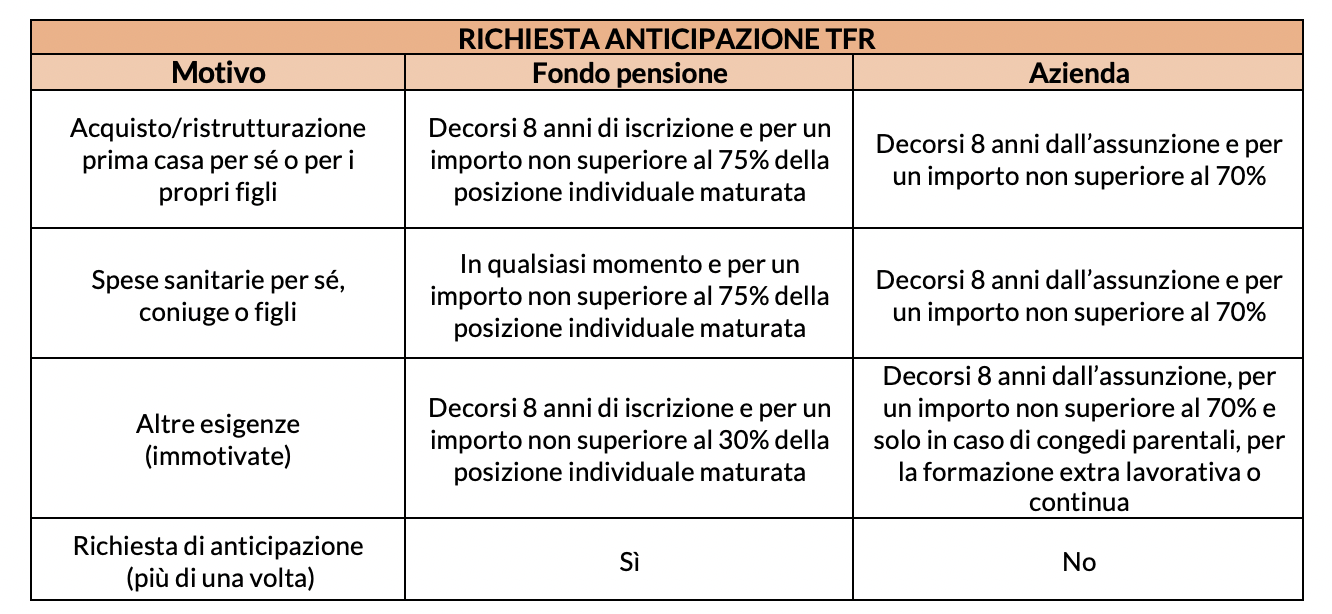 I documenti necessari da presentare per la richiesta di anticipo del tfr per acquisto della prima casa prevedono, innanzitutto, l'atto notarile ma in itinere. 297/82 l'erogazione di un' anticipazione sul tfr maturato nella misura del …. I lavoratori dipendenti presso un'azienda da almeno 8 anni, hanno infatti diritto a chiedere un'anticipazione del trattamento di fine rapporto (conosciuto anche come liquidazione o buona uscita). Questa possibilità è quindi prevista dal codice civile ed in particolare dall'articolo 2120 comma sei. L'anticipazione della liquidazione quindi deve essere strumentale a questo tipo di richiesta e.